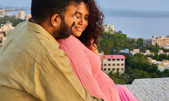 Actor Swara Bhasker announced her pregnancy via a social media post on Tuesday. Sharing photos of herself, flaunting a baby bump, along with husband Fahad Zirar Ahmad, she wrote that she is “blessed, graceful, excited” to “step into a whole new world”. In the photos, the couple can be seen sitting on a terrace looking at the skyline as Fahad caresses Swara’s baby bump. Swara is seen in a pink dress while Fahad is wearing a beige shirt.