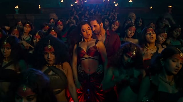 The music video shows Rashmika, dressed in a shiny red dress, sultrily swaying on hard-hitting beats in a gothic background. Ayushmann is also seen in the video, looking sinister.