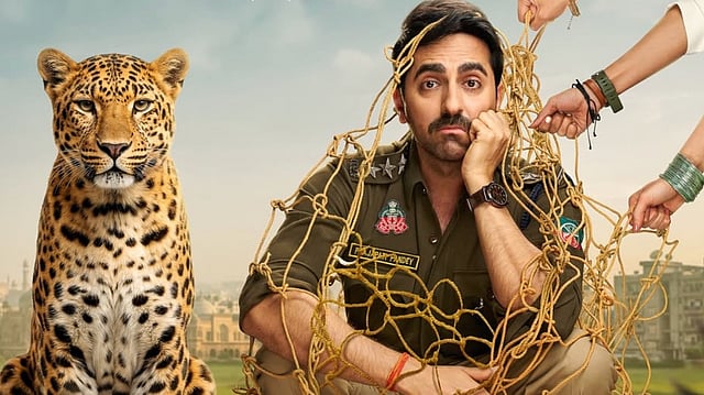 The makers also released a new poster on the occasion, which interestingly doesn’t feature the female leads — Instead, what we see is a hapless Ayushmann stuck in a net, now finding himself in the company of a predatory leopard. “Shikari khud Ho Gaya Shikaar! Ab Jaal mein phas gaye humare Prajapati Pandey,” the makers captioned the announcement post.
