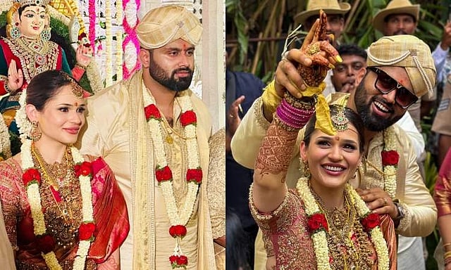 Kannada actor Abishek Ambareesh, son of renowned actor and Member of Parliament Sumalatha and late actor Ambareesh, tied the knot with model Aviva Bidapa, daughter of fashion guru Prasad Bidapa.