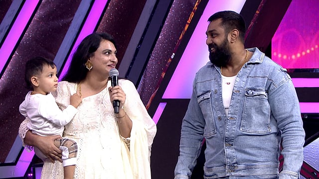 Family moments add warmth to the show. Sister-in-law Meghana Raj surprised Dhruva on stage, sparking emotional reflections on family bonds, while sharing playful stories of Dhruva with his son, Ryan. Dhruva’s wife, Prerana, also made a memorable appearance, recalling their early days together. The celebrations included a pre-birthday cake-cutting, with their children Rudrakshi and Hayavadan joining the fun.