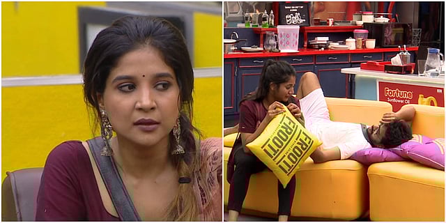 Abhirami makes one thing loud and clear. 'I am here to have fun.' Fun..something that has been solely missing in the house.It's late into the night and Cheran, Sakshi Sherin and Vanitha are talking. They talk about the Tharshan-Sherin equation. Sherin gets fed up and walks away.Ah, contestants who re-enter always have that extra knack of having watched the episodes. Sakshi says that she didn't push Kavin on purpose in a task that they had played earlier.Mohan Vaidya advises Cheran to be himself and drop the whole father-daughter facade. Fair point, but just not from the right person.Sandy is of the opinion that only Abhirami has no serious intentions with her return and that the others have come for revenge. Kavin's reaction to this here is priceless.Sandy says that Mohan Vaidya has changed, a lot. On asking him about it, Mohan Vaidya says he was a 'beku' previously and will give his best at everything, be it tasks or fights.The pillow task continues. The first half of this task was a disaster. Let's see how this one goes. And btw, the winner's team has a chance for nominating a least performer.Team Blue wins. But it's more like Vanitha has won. So, she has control over the nomination process now. Hmm....Even though she's been watching from the outside, there's of course, a lot of filling in to do. Sherin upates Sakshi on the Cheran-Losliya situation.Sakshi enters. And these two are at it.Mohan Vaidya advises Cheran to be careful with Losliya and that there's a lot that he's not seeing. Cheran brushes it aside, saying that she's just bound by love.During the debate, the expected confrontation happens. Kavin and Sakshi get into a tussle for a while before they move on.The boys gang just can't stop. This time, Sandy notices Vanitha cooking in the kitchen and having a chat with Mohan and Sakshi. Sandy imitates Vanitha, and the housemates have fun