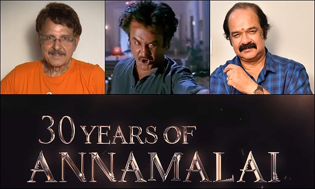 Having seen success with his previous films, Suresh Krissna today is able to acknowledge the difference in the degree of success between those films and Annamalai. “I remember watching Annamalai on the fourth or fifth day at Maris Theatre, Trichy, and the fans garlanded me and lifted me on their shoulders and carried me till the entrance. It was euphoric to deliver a film that charged up the fans to this extent,” says the filmmaker, who ensured that these fans got their paisa vasool moment right from the first frame when he envisioned the now-iconic ‘SUPERSTAR RAJNI’ opening credits. “Over the time I spent with Rajini sir, I understood why he is so loved by people. I too became a fan of the Superstar and wanted to do something to express my adulation for him. Rajini sir wasn’t interested, and it was only at KB sir’s insistence that he relented. Deva sir’s magic and editor Ganesh Kumar’s persistence got us those iconic James Bond-inspired opening credits. The first time Rajini sir saw the letters whoosh past him, he had goosebumps. We knew we had a winner in our hands, but what we didn’t know was how this would become a symbol of Rajini sir’s legacy.”