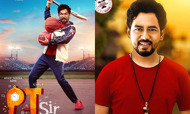 We had earlier reported that Hiphop Tamizha Adhi will be the lead in director Karthik Venugopal’s sophomore film that was tentatively titled HHT7. The first-look poster and the title of the film have now been released by the makers. Titled PT Sir, the poster shows Adhi in track pants and activewear holding basketballs, a football, and a cricket bat in his hands. He is also seen clenching a whistle in his mouth.