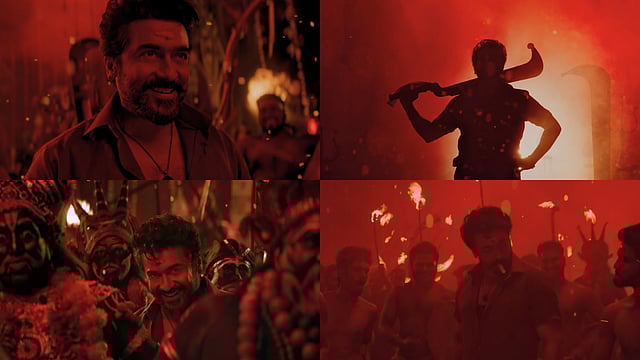 Crimson and fiery red visuals fill the screens in Karuppu's new single 'Raathu Raasan', which was unveiled on Tamil New Year. The third song from Suriya's upcoming film from director RJ Balaji unfolds in a temple where several villagers gather to sing and dance their heart out. Carrying flames in one hand and sickles in the other, the celebratory dance number for the God sees Suriya becoming one with the members and the atmosphere and engaging wholeheartedly in the festival. The rest of the video showcases a few behind-the-scenes visuals of how the song was crafted.