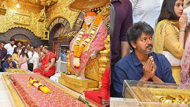 At the Sai Baba temple in Shirdi, Vijay was seen prostrating himself in front of the spiritual master's shrine in a video, now being shared across social media. The TVK leader is then seen receiving prasad from the priest at the shrine. The video shows him with a bowed head for nearly 10 seconds before he makes a move on receiving the offering.
