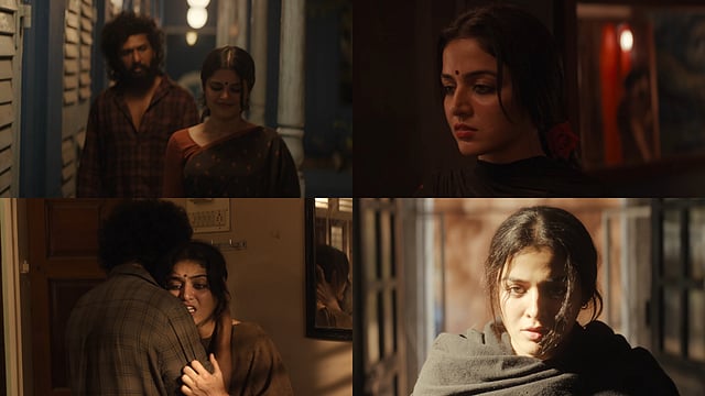 The new video opens with Sanjana Krishnamoorthy taking the mic as singer Parvathi. The saree-clad woman with kohl-rimmed eyes also seemed to be playing Devadas' romantic interest besides Chandra. Further, we see these two women witnessing Devadas' troubled and disruptive world, and one of them even joins him in his mission by planting explosives and shooting people. The glimpse ends with Devadas carrying what looked like a dead woman in a car.