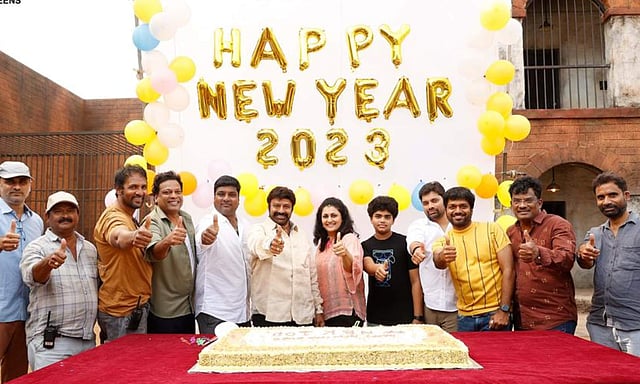 The first schedule of NBK 108, the upcoming Telugu film starring Nandamuri Balakrishna, was wrapped up on Saturday, the makers announced. They finished the shooting with a huge action sequence at a jail set. The cast and crew also celebrated New Year's on the sets.